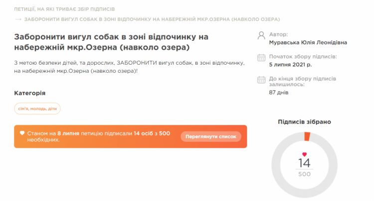 Станом на 8 липня петицію підписали 14 осіб з 500 необхідних.